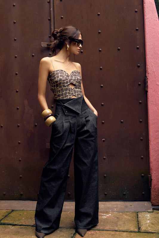 PANTALÓN DENIM CON HERRAJES DORADOS EN CINTURA