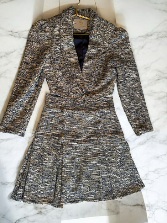 Set de jacket y falda corta con botones en Tweed