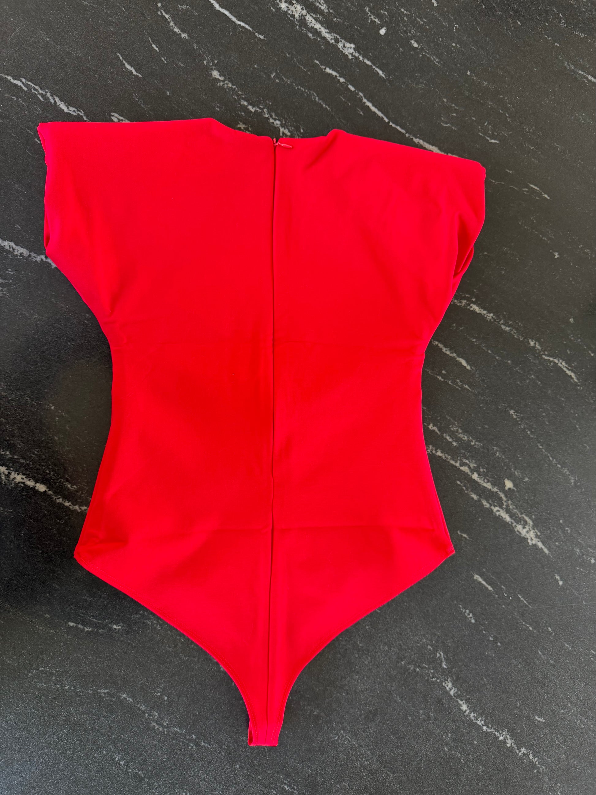 Body negro con hombreras manga corta, en tejido de punto italiano.