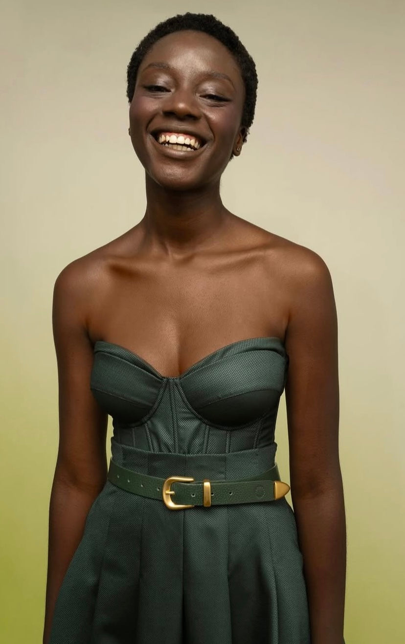 Bustier ajustable con cordón en la espalda y mangas removibles.