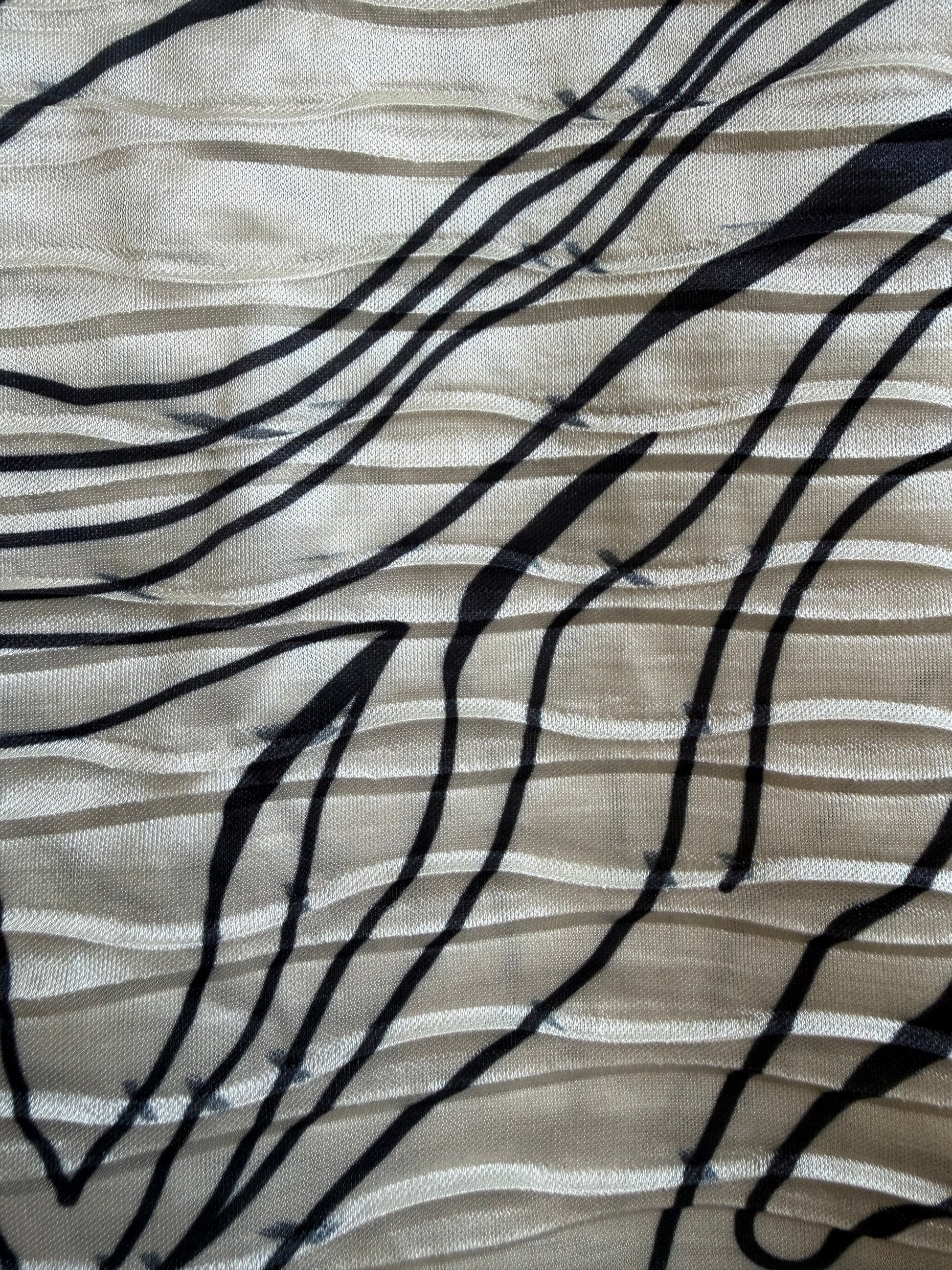 El top tiene una capa sobrepuesta al frente y en la espalda. El pantalón tiene un drapeado en la cadera que termina con una estola de lado hasta el piso. Viene largo para cortarlo a medida. Piezas limitadas.